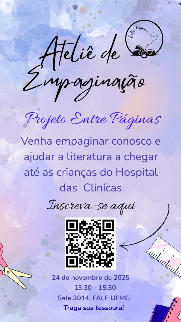 O projeto "Entre Páginas: leitura para crianças e adolescentes em hospitais" da FALE convida a todos(as) para participarem dos Ateliês de Empaginação.