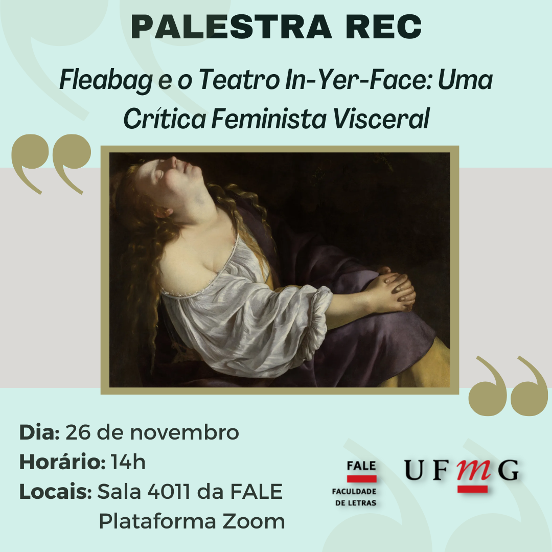 O Núcleo de Estudos REC - A Renascença em Contracena - da UFMG convida a todos(as) para a conferência "Fleabag e o Teatro In-Yer-Face: Uma Crítica Feminista Visceral", ministrada pela Prof.ª Silvia Tellini (IFBaiano).