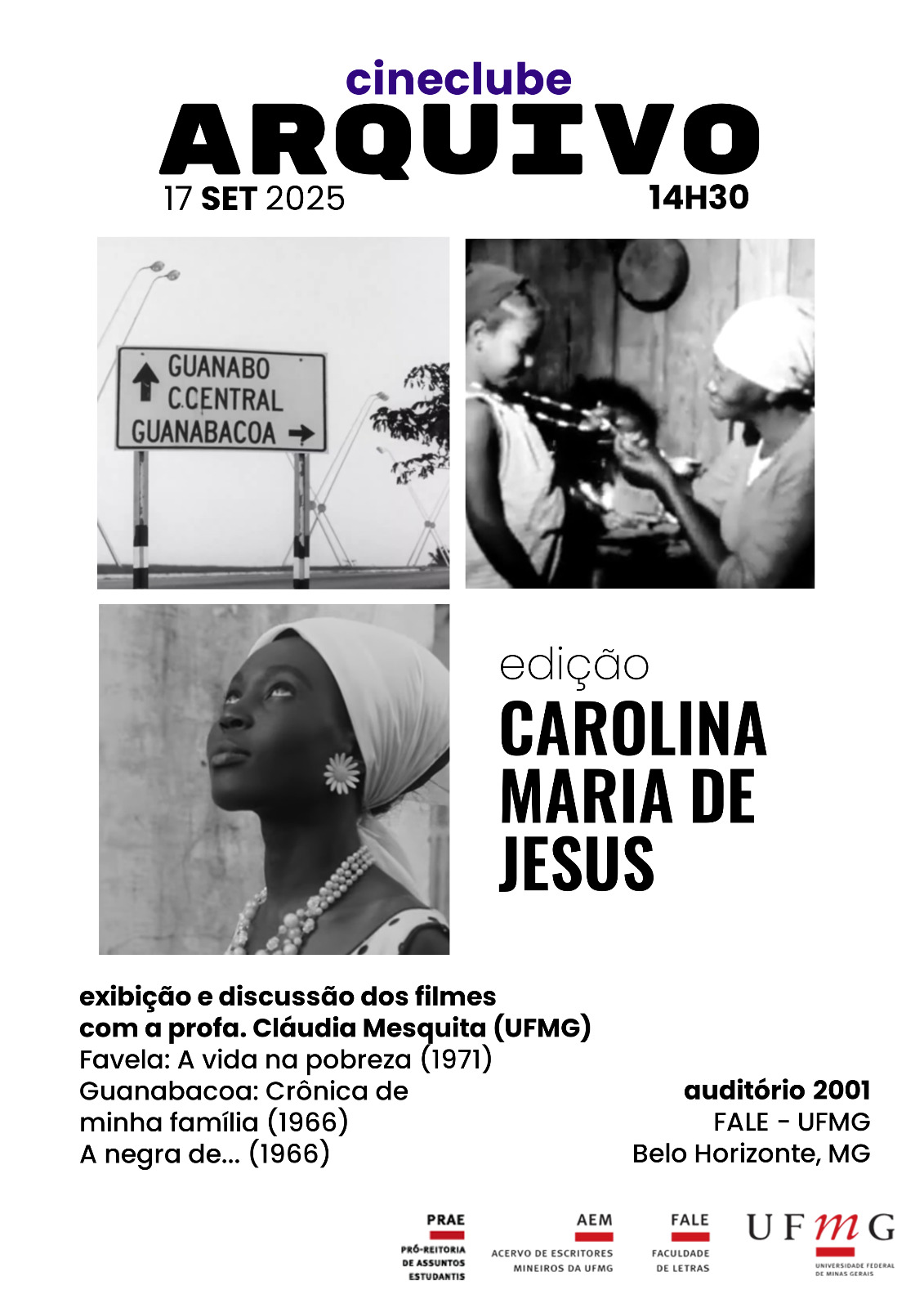 A sessão apresentará, pela primeira vez, este registro histórico preservado pelo Acervo de Escritores Mineiros, promovendo uma reflexão sobre a representação e influência de Carolina Maria de Jesus em paralelo com outras produções audiovisuais de temática similar. Também, será abordada a diversidade do cinema negro e sua relevância na formação de memórias, identidades e resistências.